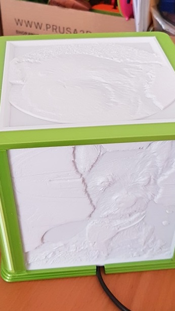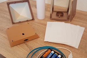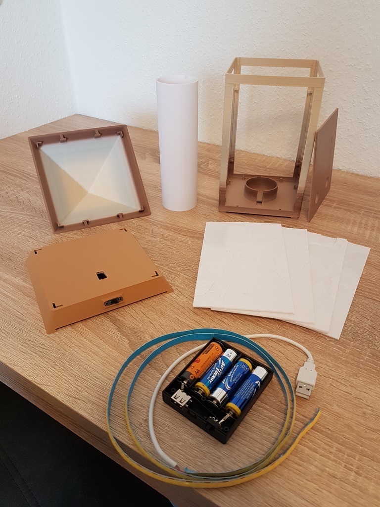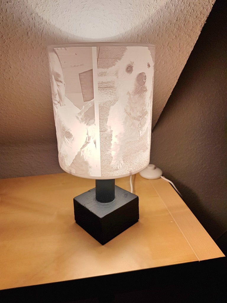 Der Würfel ist mein Erstlingswerk, sieht schick aus. Die Fotos übrigens zeigen die noch immer einzige Version. Auch die 5 Motive können jederzeit getauscht werden. Der Würfel würde bei Interesse natürlich technisch auf den neuesten Stand (E14) gebracht.