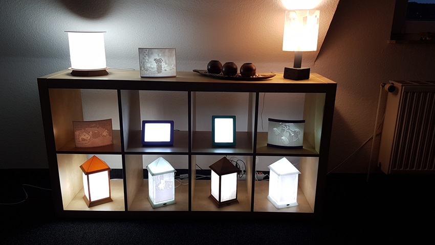 Alle hier gezeigten Objekte sind nicht nur technisch aufwendig gestaltet, sondern gefallen auch durch ihre Optik. Farblichen Wünsche können berücksichtigt werden. Für eine Bestellung sind das Objekt und die Farbe(n) anzugeben als auch das gewünschte Foto zu übermitteln. Das Bild (=Foto) wird grundsätzlich in der Farbe Weiß gedruckt und sollte eine hohe Qualität aufweisen. Die Farben sind je nach Verfügbarkeit und Menge gültig, die Leuchtmittel sind auf kaltweißes Licht ausgelegt. Warmweiße Leuchtmittel auf Anfrage.